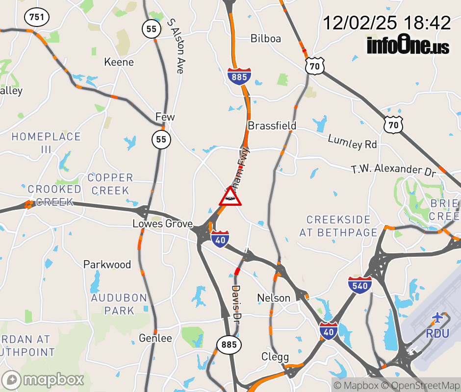The right lane is closed near Exit 6 (E Cornwallis Rd). ![]() |