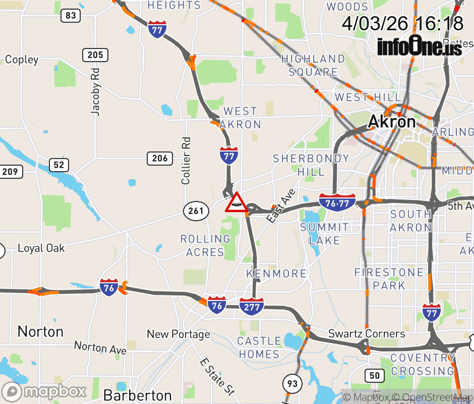 All lanes are blocked on I-77 North at SR-261/V Odom Blvd, due to a crash. Updated: Fri 4/3/26 4:18 PM EDT ![]() Updated: Fri 4/3/26 4:18 PM EDT |