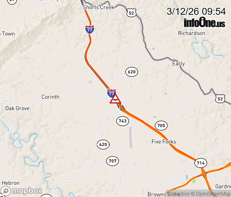 On I-77 at mile marker 19.6 in the County of Carroll, motorists can expect delays due to a vehicle crash. The north right shoulder is closed. ![]() |
