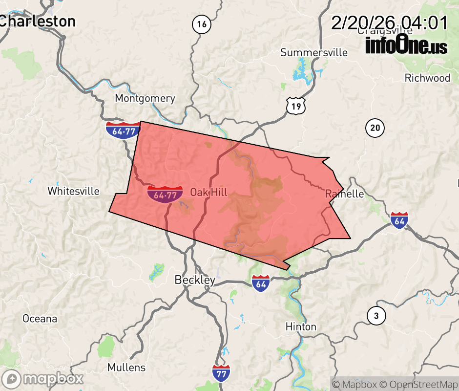 Canceled 2/20/26 4:30 AM Special Weather Statement issued February 20 at 3:59AM EST by NWS Charleston WV At 359 AM EST, Doppler radar was tracking a strong thunderstorm near Burnwell, or 10 miles west of Fayetteville, moving east at 55 mph. HAZARD...Wind gusts of 50 to 55 mph and pea size hail. SOURCE...Radar indicated. IMPACT...Gusty winds could knock down tree limbs and blow around unsecured objects. Minor hail damage to vegetation is possible. Locations impacted include... Fayetteville, Rainelle, Babcock State Park, Oak Hill, Mount Hope, Powellton, Bradley, Piney View, Meadow Bridge, Pax, Thurmond, and Artie. This includes the following highways... West Virginia Turnpike between mile markers 53 and 66. Route 19 between mile markers 4 and 21. ![]() |