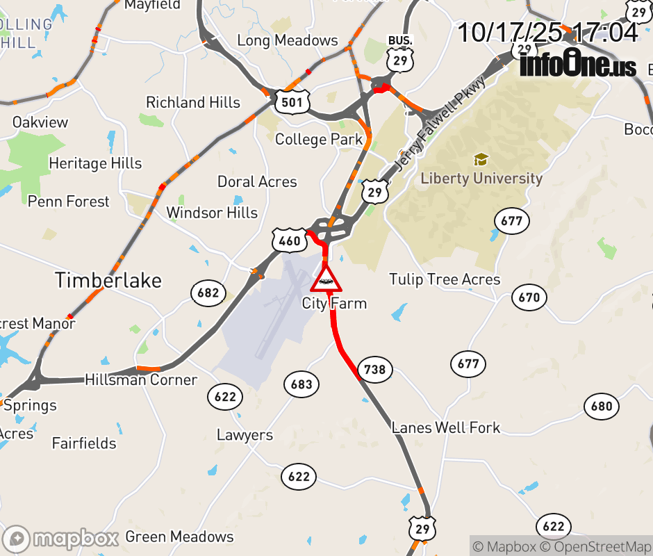 On US-29 North in the County of Campbell, in the vicinity of Rangoon St; Rt. 1433N/S (Campbell County), motorists can expect delays due to a multi-vehicle crash. Updated: Fri 10/17/25 5:04 PM EDT ![]() Updated: Fri 10/17/25 5:04 PM EDT |