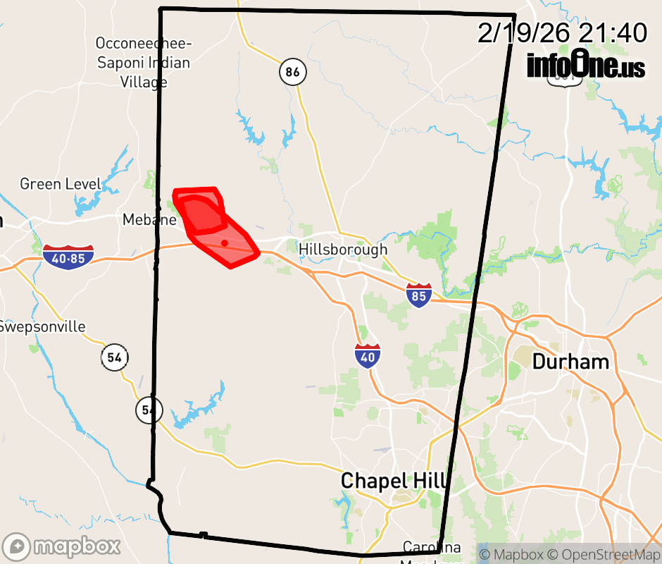 Canceled 2/19/26 10:20 PM Orange County has 3 power outages affecting 1453 customers. Duke Energy 1453 without power Estimated repair: Fri 12:45 AM Updated: Thu 2/19/26 9:40 PM EST ![]() Updated: Thu 2/19/26 9:40 PM EST |