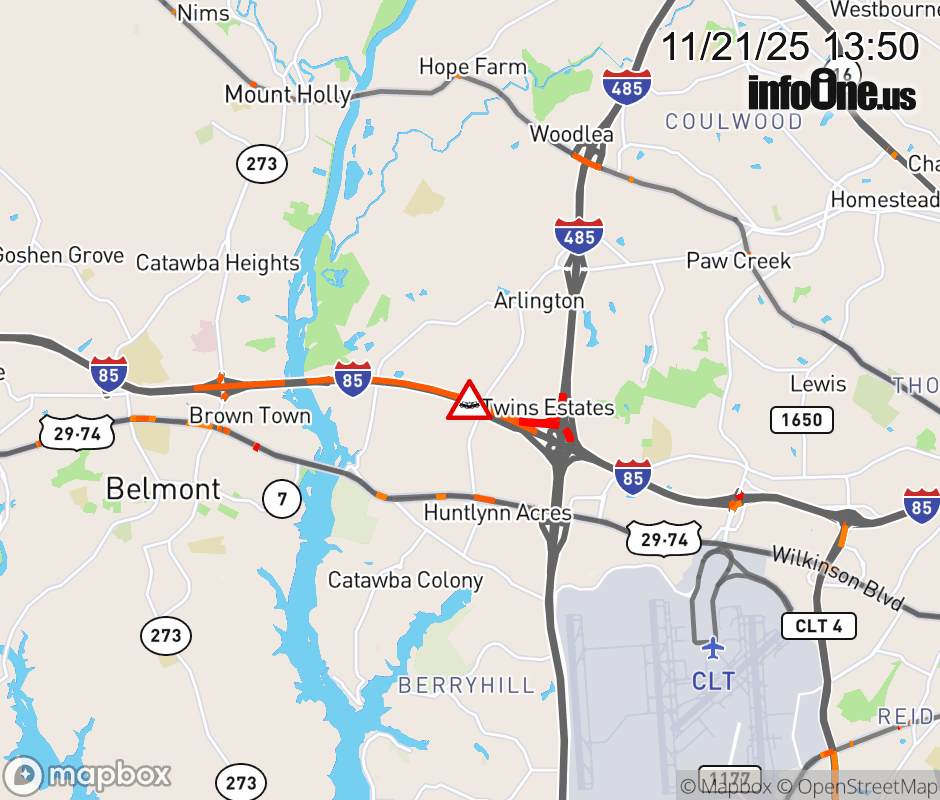 The ramp lane is closed at the I-85 South on ramp from Sam Wilson Rd. ![]() |