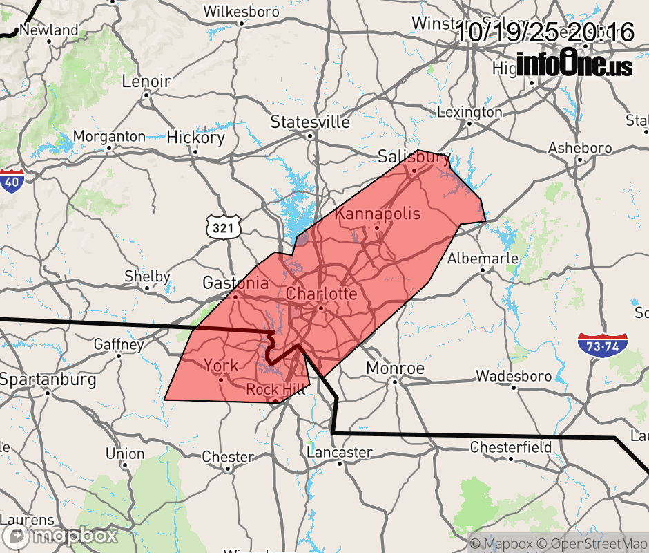 Canceled 10/19/25 9:00 PM Special Weather Statement issued October 19 at 8:15PM EDT by NWS Greenville-Spartanburg SC At 814 PM EDT, Doppler radar was tracking gusty showers along a line extending from 4 miles east of Salisbury to 3 miles northwest of York. Movement was east at 25 mph. HAZARD...Wind gusts up to 40 mph. SOURCE...Radar indicated. IMPACT...Gusty winds could knock down tree limbs and blow around unsecured objects. Locations impacted include... Gastonia, Rock Hill, Uptown Charlotte, Huntersville, Kannapolis, Downtown Concord, Salisbury, York, Central Charlotte, and South Charlotte. ![]() |