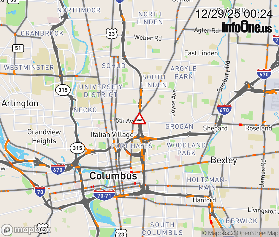 The right lane is blocked on I-71 North beyond I-670 West, due to a crash. Updated: Mon 12/29/25 12:24 AM EST ![]() Updated: Mon 12/29/25 12:24 AM EST |