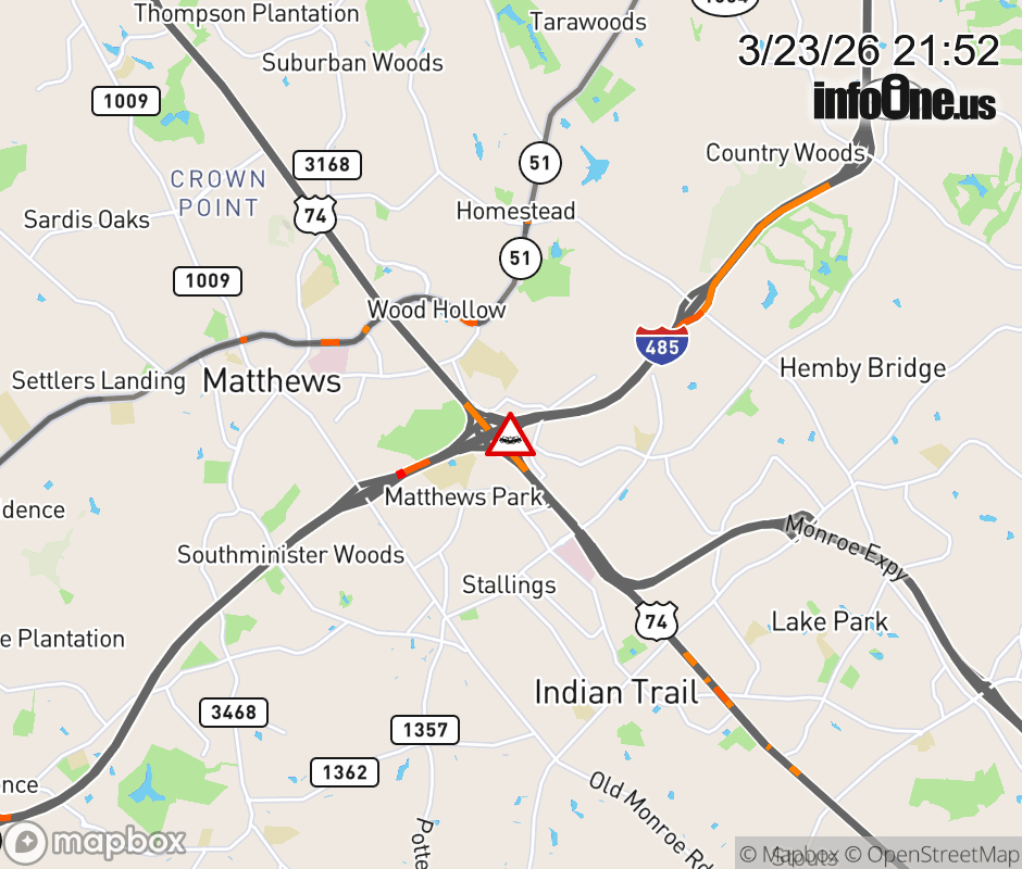 The ramp to Exit 253 (I-485) is closed. Updated: Mon 3/23/26 9:52 PM EDT ![]() Updated: Mon 3/23/26 9:52 PM EDT |