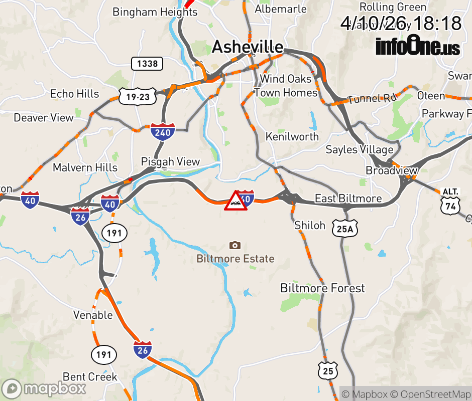 The right shoulder is closed 2 miles past Exit 47, NC 191, (Brevard Road). Updated: Fri 4/10/26 6:18 PM EDT ![]() Updated: Fri 4/10/26 6:18 PM EDT |
