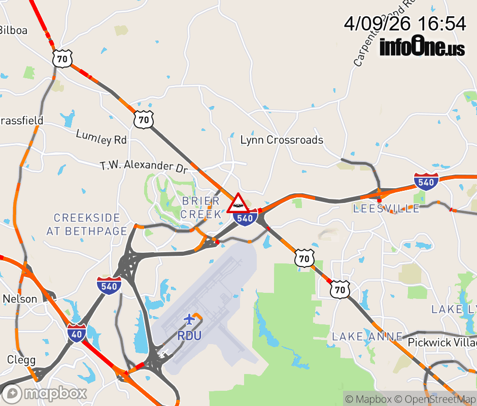 The left lane is closed near I-540. Updated: Thu 4/9/26 4:54 PM EDT ![]() Updated: Thu 4/9/26 4:54 PM EDT |