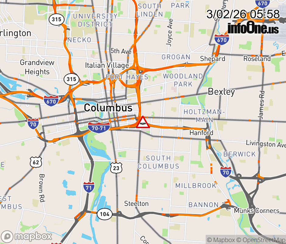 Expect lane closures on Ramp I-70 West to I-71 North, due to a crash. ![]() |