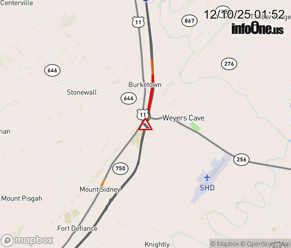 On I-81 South at mile marker 235 in the County of Augusta, motorists can expect delays due to a vehicle fire. Updated: Wed 12/10/25 1:52 AM EST ![]() Updated: Wed 12/10/25 1:52 AM EST |