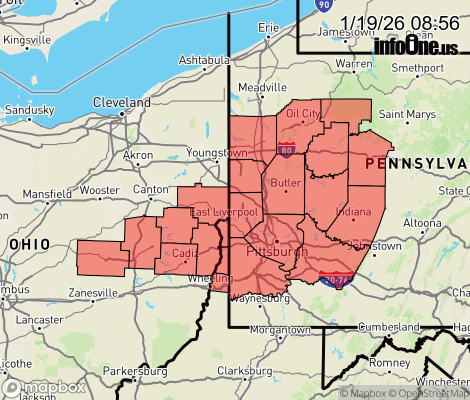 Canceled 1/19/26 12:00 PM Special Weather Statement issued January 19 at 8:55AM EST by NWS Pittsburgh PA Snow showers will continue to move across the region this morning. Some of these will produce visibility down to a half of a mile, and a quick accumulation of snow on roads. Use caution if traveling, and watch for rapid changes in visibility and slick roads. ![]() |
