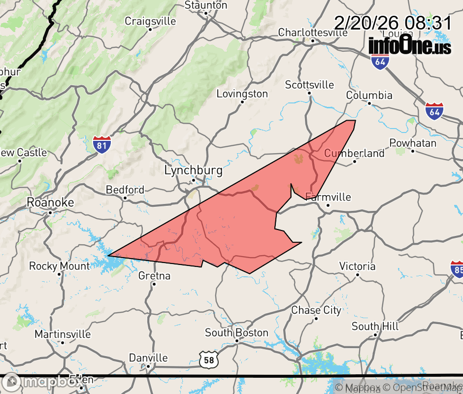 Canceled 2/20/26 9:00 AM Special Weather Statement issued February 20 at 8:30AM EST by NWS Blacksburg VA At 830 AM EST, Doppler radar was tracking gusty showers along a line extending from near Centenary to near Leesville. Movement was east at 10 mph. HAZARD...Wind gusts up to 40 mph. SOURCE...Radar indicated. IMPACT...Gusty winds could knock down tree limbs and blow around unsecured objects. Locations impacted include... Buckingham... Altavista... Appomattox... Hurt... Brookneal... Dillwyn... and Phenix. ![]() |