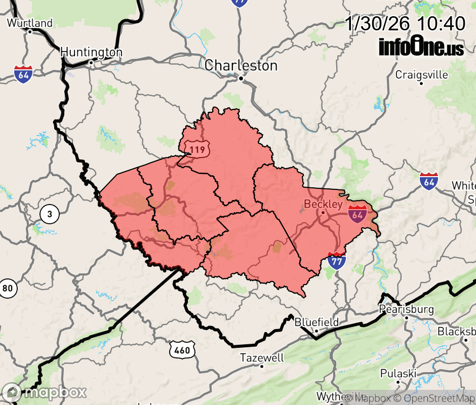Canceled 1/30/26 5:13 PM Winter Weather Advisory issued January 30 at 10:38AM EST until January 31 at 10:00PM EST by NWS Charleston WV * WHAT... Snow. Additional snow accumulations of between 2 and 4 inches. * WHERE... Portions of southeast and southern West Virginia. * WHEN... Until 10 PM EST Saturday. * IMPACTS... Plan on slippery road conditions. The hazardous conditions could impact the Friday evening commute. ![]() |