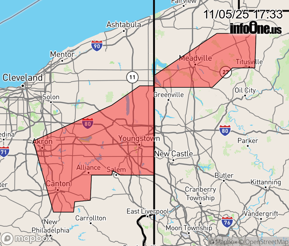 Canceled 11/5/25 6:15 PM Special Weather Statement issued November 5 at 5:29PM EST by NWS Cleveland OH At 528 PM EST, Doppler radar was tracking gusty showers along a line extending from near Cambridge Springs to near Bristolville to near Tallmadge. Movement was southeast at 40 mph. HAZARD...Wind gusts up to 40 mph. SOURCE...Radar indicated. IMPACT...Gusty winds could knock down tree limbs and blow around unsecured objects. Locations impacted include... Akron, Canton, Youngstown, Warren, Meadville, Salem, Ravenna, Columbiana, Cuyahoga Falls, Boardman, Kent, Green, Alliance, Niles, Tallmadge, North Canton, Streetsboro, Louisville, Campbell, and Hubbard. ![]() |