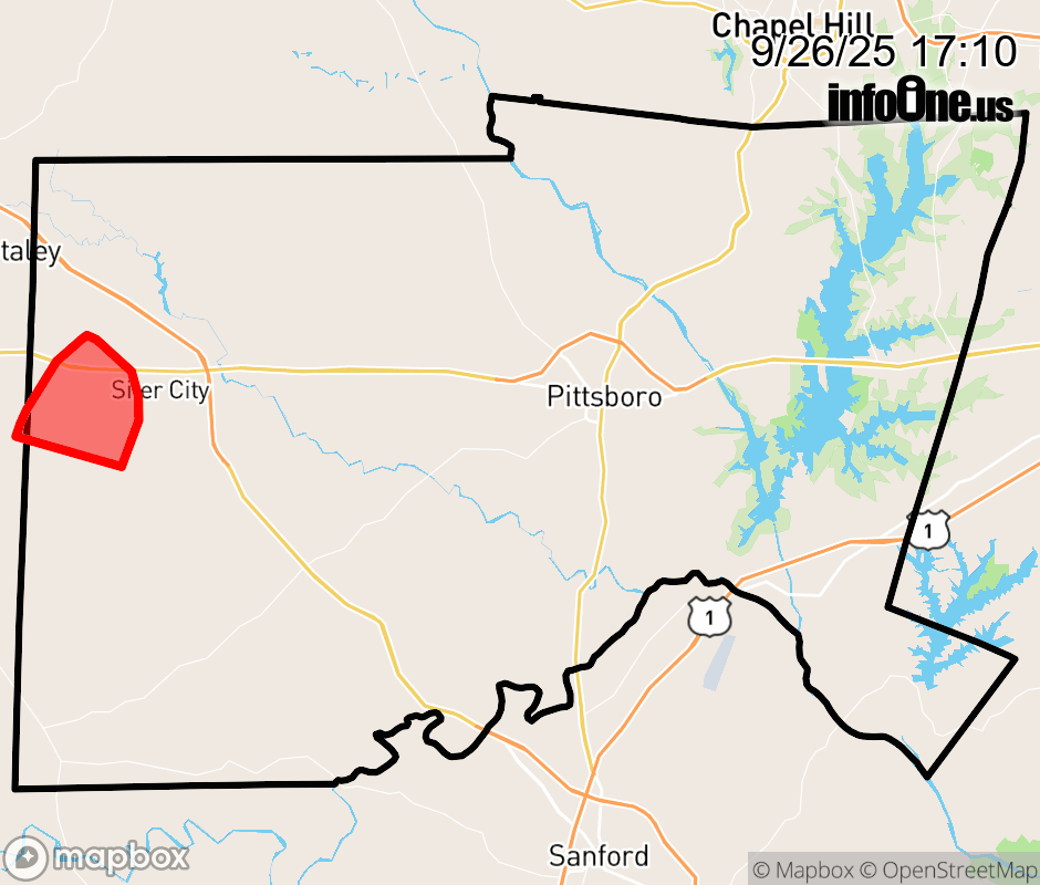 Canceled 9/26/25 5:50 PM Chatham County has 2 power outages affecting 518 customers. Duke Energy 518 without power Estimated repair: Fri 8:00 PM ![]() Updated: Fri 9/26/25 5:10 PM EDT |