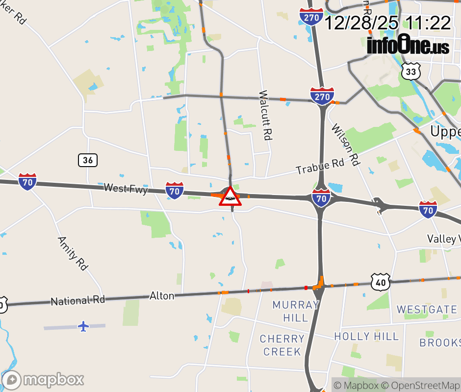 The left lane is blocked on I-70 East beyond Hilliard - Rome Rd, due to a crash. ![]() |