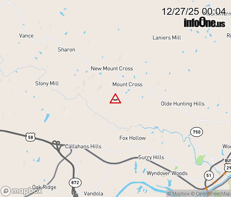On Rt. 863 North in the County of Pittsylvania, in the vicinity of Hickory Forest Rd; Rt. 1530E/W (Pittsylvania County), motorists can expect delays due to a vehicle crash. Lane closures exist. ![]() |