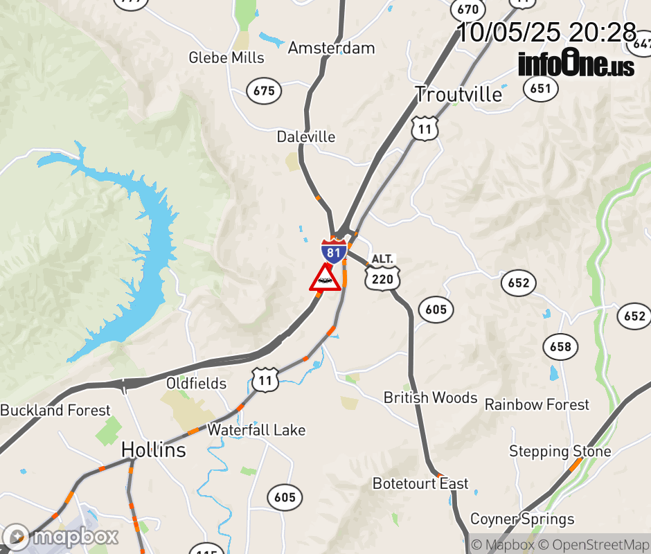 On I-81 at mile marker 149.8 in the County of Botetourt, motorists can expect delays due to a vehicle crash. The south left shoulder and left lane are closed. ![]() |