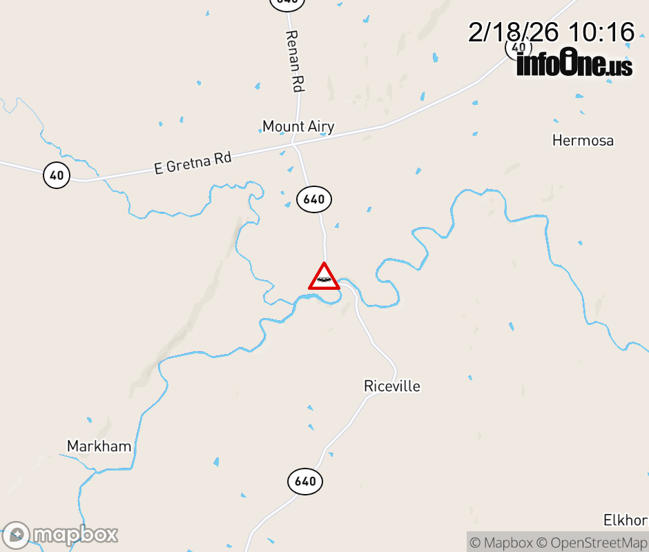 On Rt. 640 North in the County of Pittsylvania, in the vicinity of White Fall Rd; Rt. 677N/S (Pittsylvania County), motorists can expect delays due to a vehicle crash. Updated: Wed 2/18/26 10:16 AM EST ![]() Updated: Wed 2/18/26 10:16 AM EST |