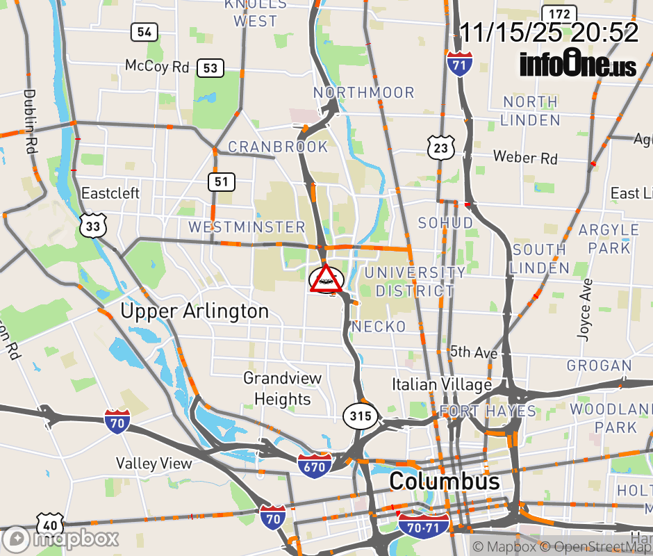 The left lane is blocked on SR-315 North beyond Medical Cntr Dr/King Ave, due to a crash. ![]() |