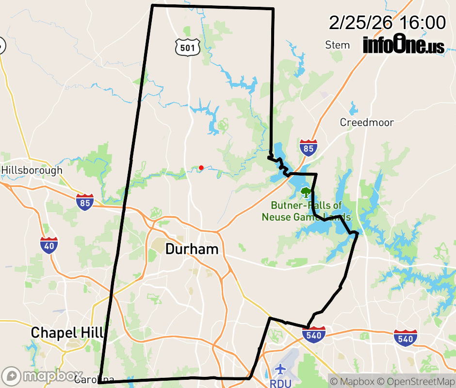 Canceled 2/25/26 4:40 PM Durham County has 1 power outage affecting 5 customers. Duke Energy 5 without power Estimated repair: Wed 6:30 PM Updated: Wed 2/25/26 4:00 PM EST ![]() Updated: Wed 2/25/26 4:00 PM EST |
