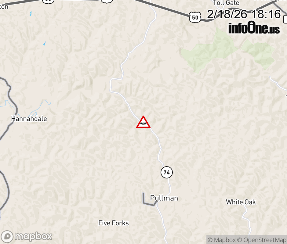 Vehicle Crash on WV-74 Pullman Dr South of Davis Run. Updated: Wed 2/18/26 6:16 PM EST ![]() Updated: Wed 2/18/26 6:16 PM EST |
