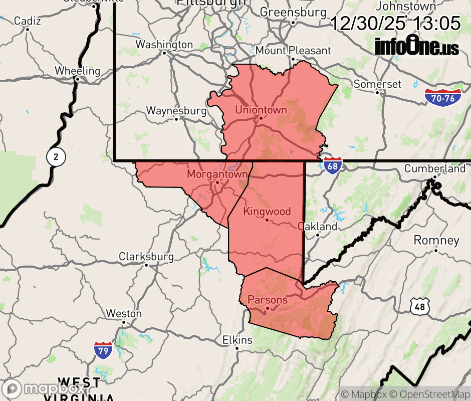 Canceled 12/30/25 9:01 PM Winter Storm Warning issued December 30 at 1:04PM EST until January 1 at 10:00AM EST by NWS Pittsburgh PA * WHAT... Heavy snow expected. Total snow accumulations between 4 and 8 inches. Winds gusting as high as 45 mph. Snow squall conditions will be possible during the evening and overnight. * WHERE... Portions of southwest Pennsylvania and northern West Virginia. * WHEN... From 1 PM Wednesday to 10 AM EST Thursday. * IMPACTS... Travel could be very difficult. The hazardous conditions will impact the Tuesday evening and Wednesday morning commutes. Gusty winds could bring down tree branches. ![]() |