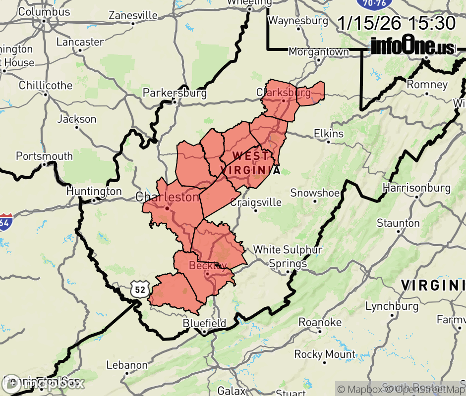 Canceled 1/15/26 7:00 PM Special Weather Statement issued January 15 at 3:29PM EST by NWS Charleston WV Snow showers continue to fade out from west to east, but could stir up some trouble spots during the evening commute. Generally light accumulations are anticipated, however, heavier bands of snow, and gusty winds at times could produce sudden visibility reductions. Those traveling should be prepared for the potential of reduced visibility and slick conditions in spots. These conditions may persist through the evening commute. Please allow extra time to reach your destination if traveling. ![]() |