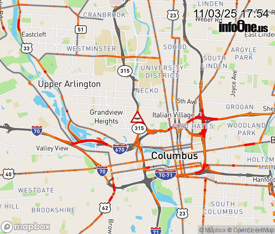The left lane is blocked on Ramp SR-315 South to I-670 East, due to a crash. ![]()  |