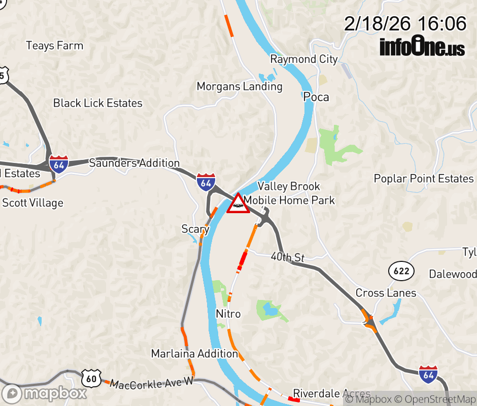Vehicle Crash on I-64E at Mile Marker 44.0. The eastbound right lane is closed. Updated: Wed 2/18/26 4:06 PM EST ![]() Updated: Wed 2/18/26 4:06 PM EST |