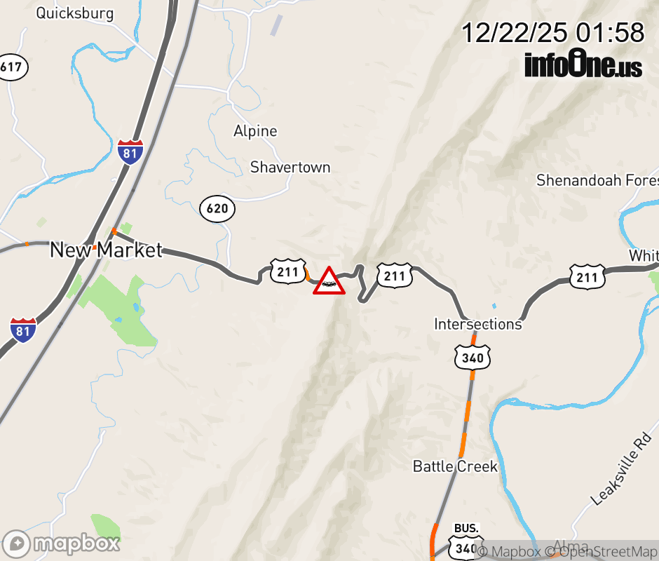 On US-211 in the County of Shenandoah, in the vicinity of R274, motorists can expect delays due to a vehicle crash. All east lanes are closed. ![]() |