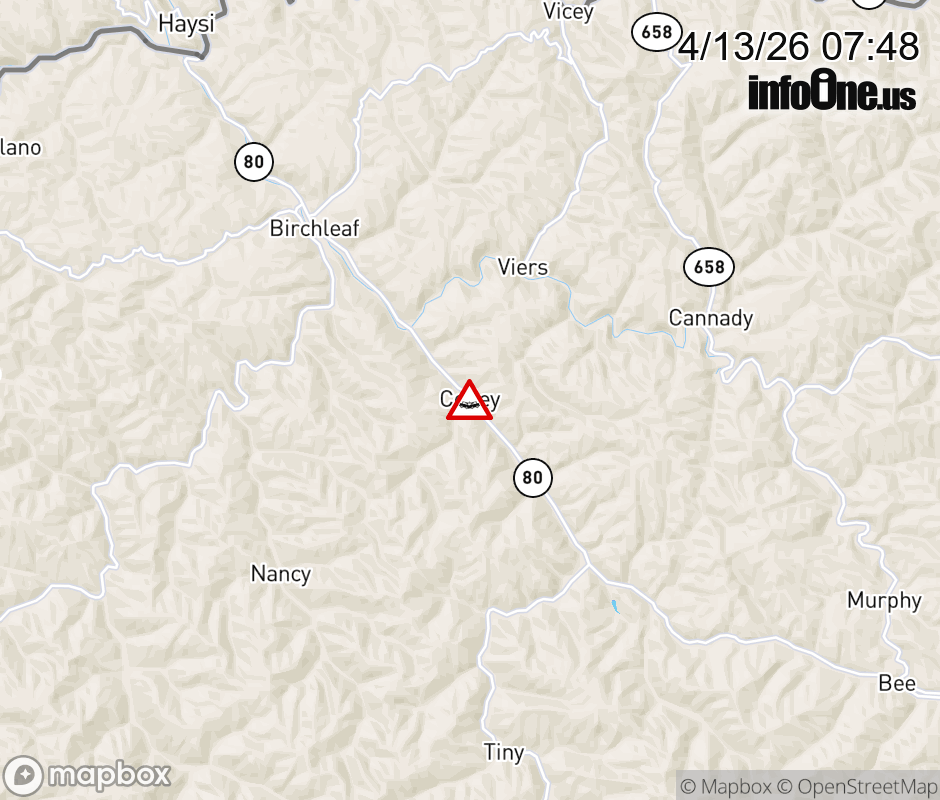 On Rt. 671 East in the County of Dickenson, in the vicinity of Sandlick Rd; VA-80N/S, motorists can expect delays due to a vehicle crash. Lane closures exist. Updated: Mon 4/13/26 7:48 AM EDT ![]() Updated: Mon 4/13/26 7:48 AM EDT |