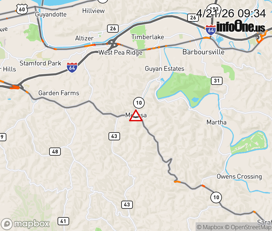 Vehicle Crash on WV-10 (Davis Creek Road at 16th Street Road). ![]() |