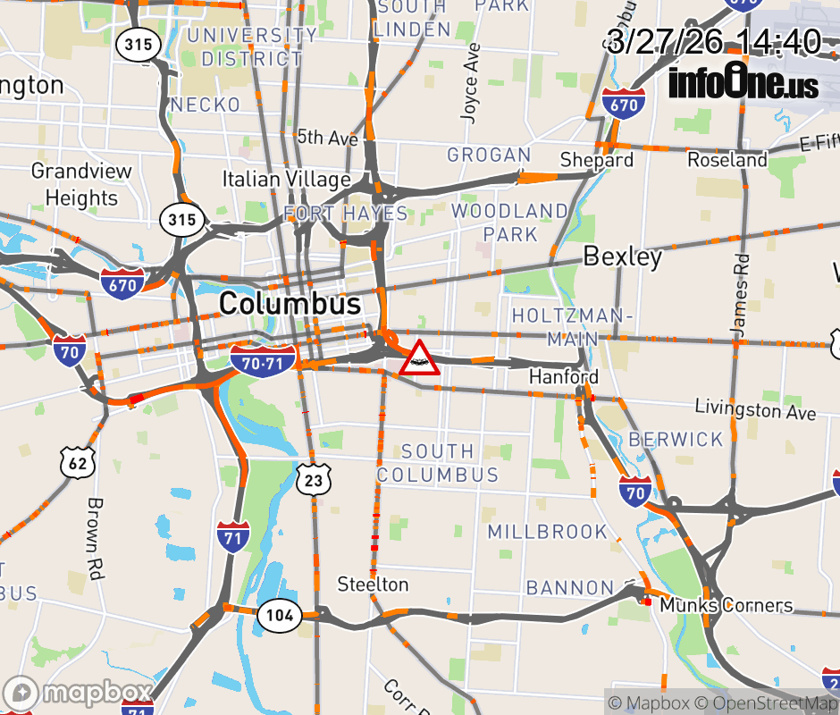 The left lane is blocked on Ramp I-70 West to I-71 North, due to a crash. Updated: Fri 3/27/26 2:40 PM EDT ![]() Updated: Fri 3/27/26 2:40 PM EDT |