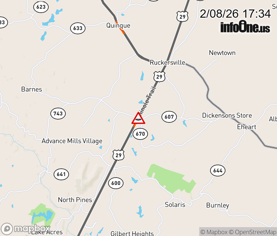 On Rt. 607 East in the County of Greene, in the vicinity of Seminole Trl; US-29N, motorists can expect delays due to a vehicle crash. Updated: Sun 2/8/26 5:34 PM EST ![]() Updated: Sun 2/8/26 5:34 PM EST |