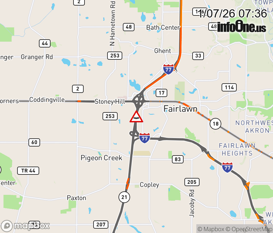 The right shoulder is blocked on I-77 North at I-77/SR-21 North, due to a crash. ![]() |
