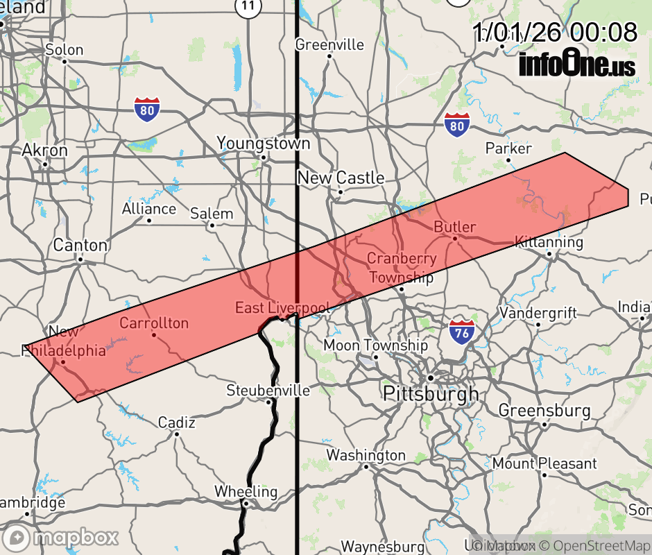 Canceled 1/1/26 12:15 AM Snow Squall Warning issued January 1 at 12:07AM EST until January 1 at 12:15AM EST by NWS Pittsburgh PA The snow squall which prompted the warning has exited the area. Therefore, the Snow Squall Warning will be allowed to expire. Snow and ice-covered roads will continue to make travel difficult. ![]() |