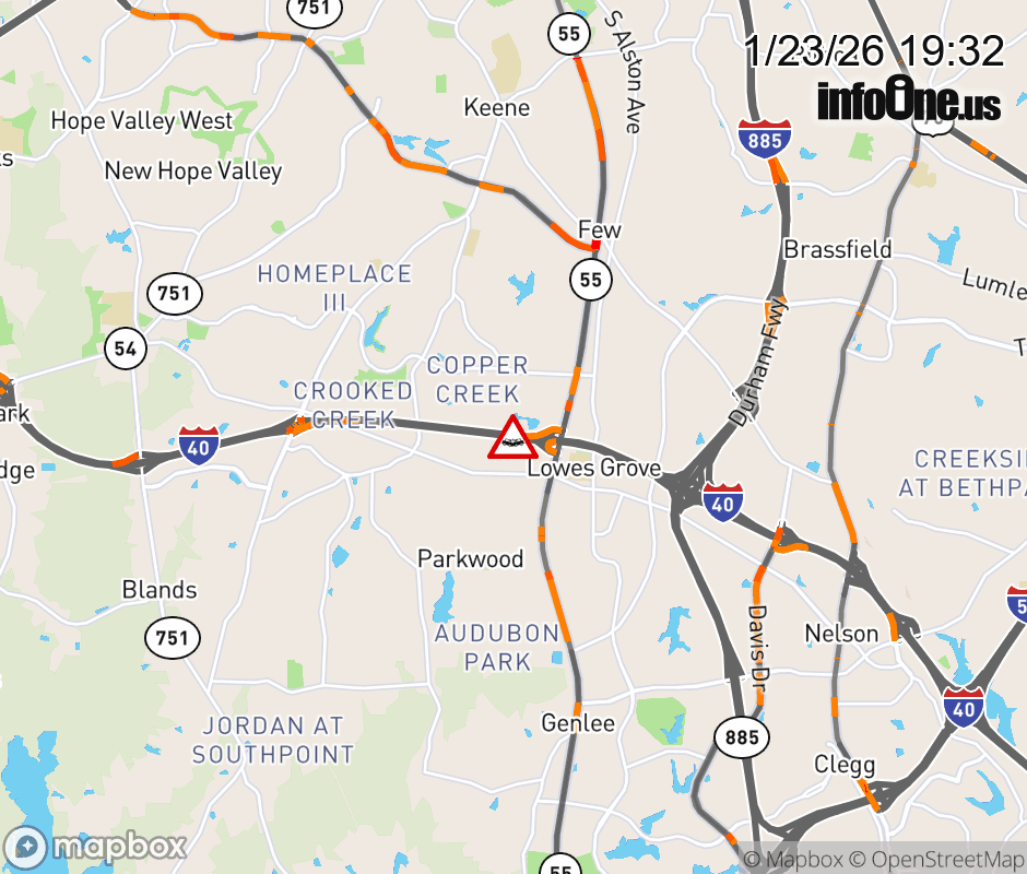The right shoulder is closed near Exit 278 (NC-55). Updated: Fri 1/23/26 7:32 PM EST ![]() Updated: Fri 1/23/26 7:32 PM EST |