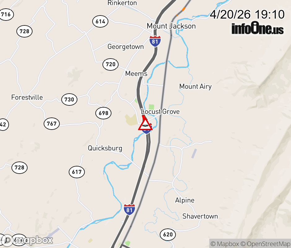 On I-81 at mile marker 269 in the County of Shenandoah, motorists can expect delays due to a tractor trailer crash. The south right lane and right shoulder are closed. Traffic backups are approximately 1.0 mile. Updated: Mon 4/20/26 7:10 PM EDT ![]() Updated: Mon 4/20/26 7:10 PM EDT |