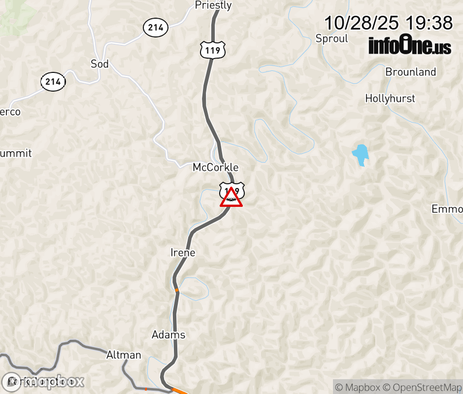| Canceled 10/28/25 7:56 PM Location: US-119 at MM 0.0, WV Accident.