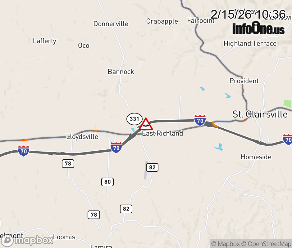 The left lane is blocked on I-70 West at SR-331, due to a crash. Updated: Sun 2/15/26 10:36 AM EST ![]() Updated: Sun 2/15/26 10:36 AM EST |