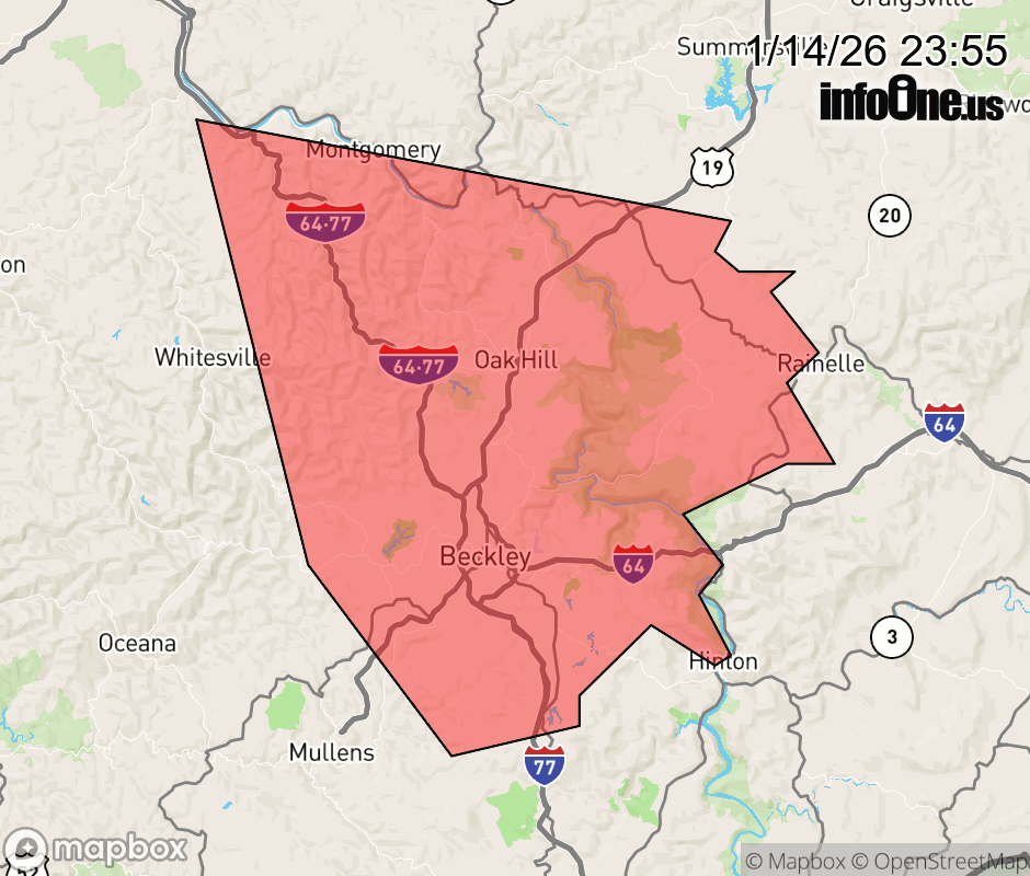 Canceled 1/15/26 12:30 AM Snow Squall Warning issued January 14 at 11:52PM EST until January 15 at 12:30AM EST by NWS Charleston WV The National Weather Service in Charleston West Virginia has issued a * Snow Squall Warning for... Southeastern Kanawha County in central West Virginia... Raleigh County in southeastern West Virginia... Fayette County in southeastern West Virginia... East central Boone County in central West Virginia... * Until 1230 AM EST. * At 1151 PM EST, a dangerous snow squall was located 9 miles northwest of Dry Creek, or 11 miles northwest of Beckley, moving east at 25 mph. HAZARD...Intense bursts of heavy snow. Gusty winds leading to blowing snow and visibility rapidly falling to less than one-quarter mile. Wind gusts up to 35 mph. SOURCE...Radar and webcams. IMPACT...Travel will become difficult and potentially dangerous within minutes. This includes the following highways... West Virginia Turnpike between mile markers 28 and 85. Interstate 64 in West Virginia between mile markers 120 and 137. Route 19 between mile markers 1 and 26. This snow squall will be near... Beckley, Mabscott, Bradley, Prosperity, Macarthur, and Dry Creek around 1155 PM EST. Mount Hope, Sophia, Piney View, Crab Orchard, and Stanaford around 1200 AM EST. Beaver around 1205 AM EST. Daniels around 1210 AM EST. Shady Spring around 1215 AM EST. Other locations impacted by this snow squall include Thurmond, Leewood, Dawes, Pax, Meadow Bridge, Sharon, Arnett, Eskdale, Dorothy, and Lester. ![]() |