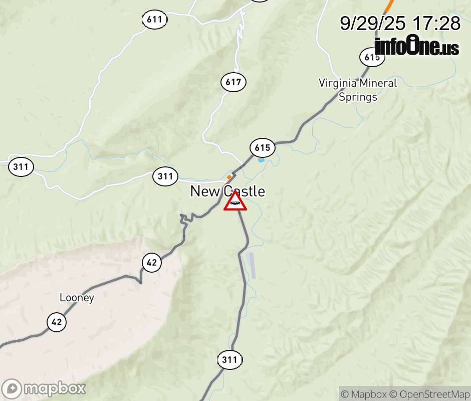 On VA-311 in the County of Craig, in the vicinity of Conrad St; Rt. 640E/W (Craig County), motorists can expect delays due to a vehicle crash. All north lanes are closed. All south lanes are closed. ![]() |