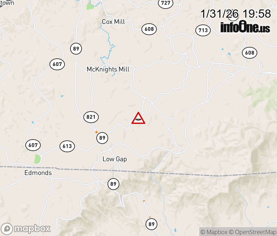 On Rt. 613 East in the County of Grayson, in the vicinity of Woodside Rd; Rt. 799N/S (Grayson County), motorists can expect delays due to a vehicle crash. Lane closures exist. Updated: Sat 1/31/26 7:58 PM EST ![]() Updated: Sat 1/31/26 7:58 PM EST |