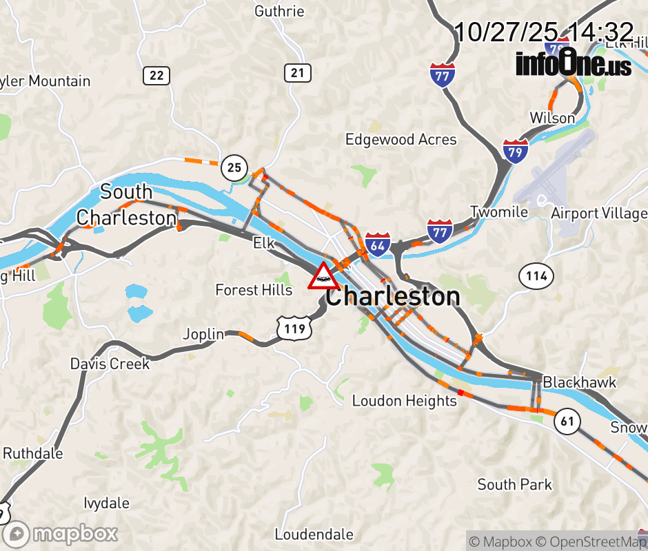 Vehicle Crash on I-64W at Mile Marker 57.5. Comments:Oakwood Entrance/Exit. Updated: Mon 10/27/25 2:32 PM EDT  Updated: Mon 10/27/25 2:32 PM EDT | |||||||||