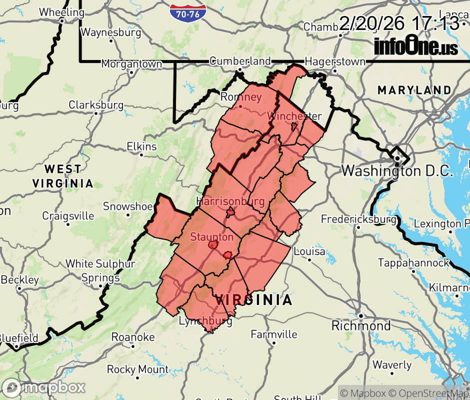 Canceled 2/20/26 7:00 PM Special Weather Statement issued February 20 at 5:12PM EST by NWS Baltimore MD/Washington DC Westerly winds may gust to around 40 to 50 mph through 7 PM in portions of eastern West Virginia, Shenandoah Valley, and Blue Ridge Mountains. These gusty winds could cause minor tree damage and blow around lightweight objects. Be prepared for cross winds if driving a high profile vehicle on north-south roads. ![]() |
