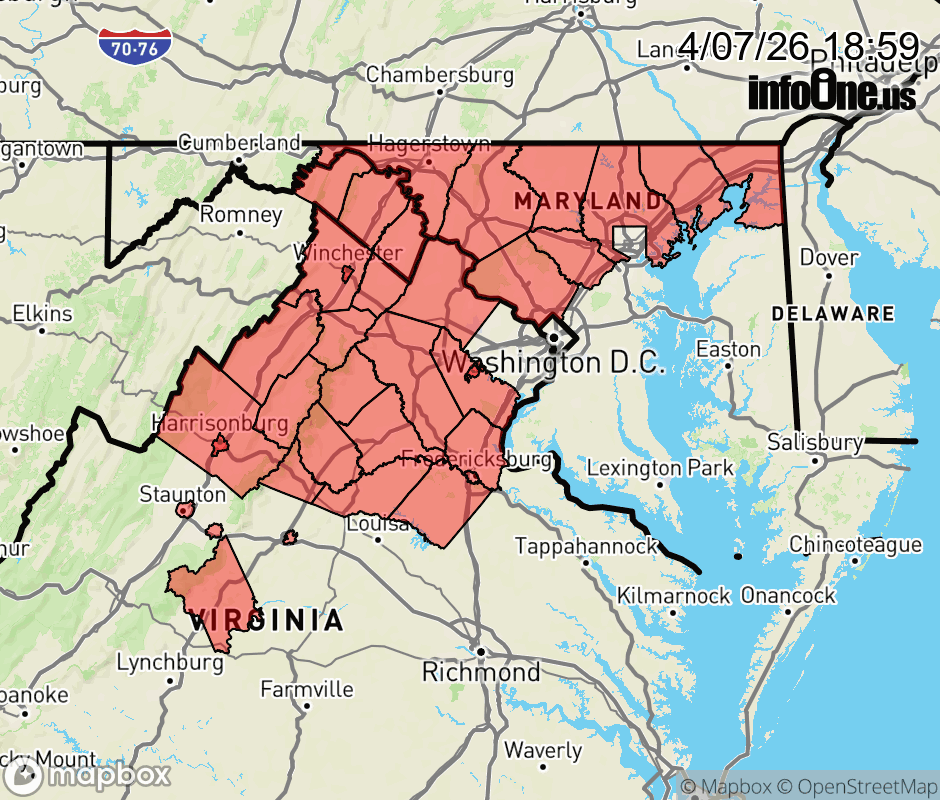 Freeze Warning issued April 7 at 6:57PM EDT until April 8 at 9:00AM EDT by NWS Baltimore MD/Washington DC * WHAT... For the Freeze Warning, sub-freezing temperatures as low as 26 expected. For the Freeze Watch, sub-freezing temperatures as low as 32 possible. * WHERE... Portions of central, north central, northeast, and northern Maryland, central, northern, northwest, and western Virginia, and panhandle West Virginia. * WHEN... For the Freeze Warning, from midnight tonight to 9 AM EDT Wednesday. For the Freeze Watch, from late Wednesday night through Thursday morning. * IMPACTS... Frost and freeze conditions could kill crops, other sensitive vegetation and possibly damage unprotected outdoor plumbing. ![]() |