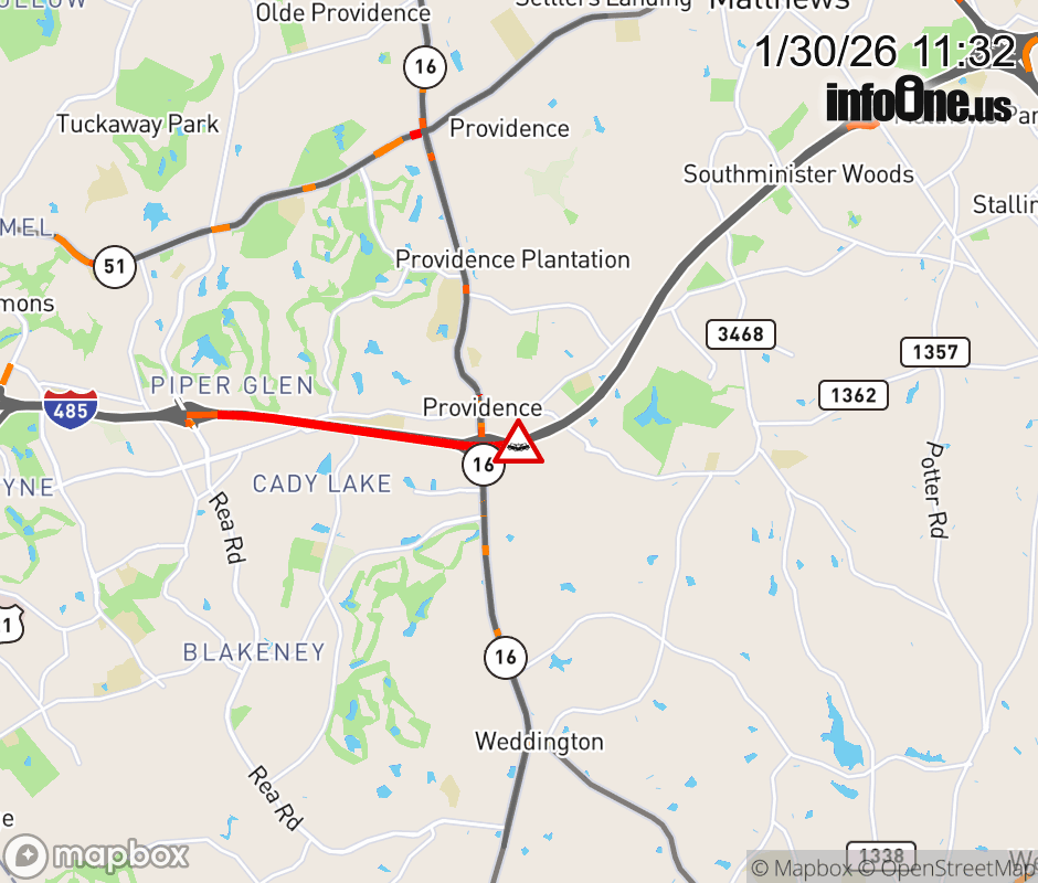 The two right lanes are closed near Exit 57 ( NC-16 Providence Rd.). ![]() |
