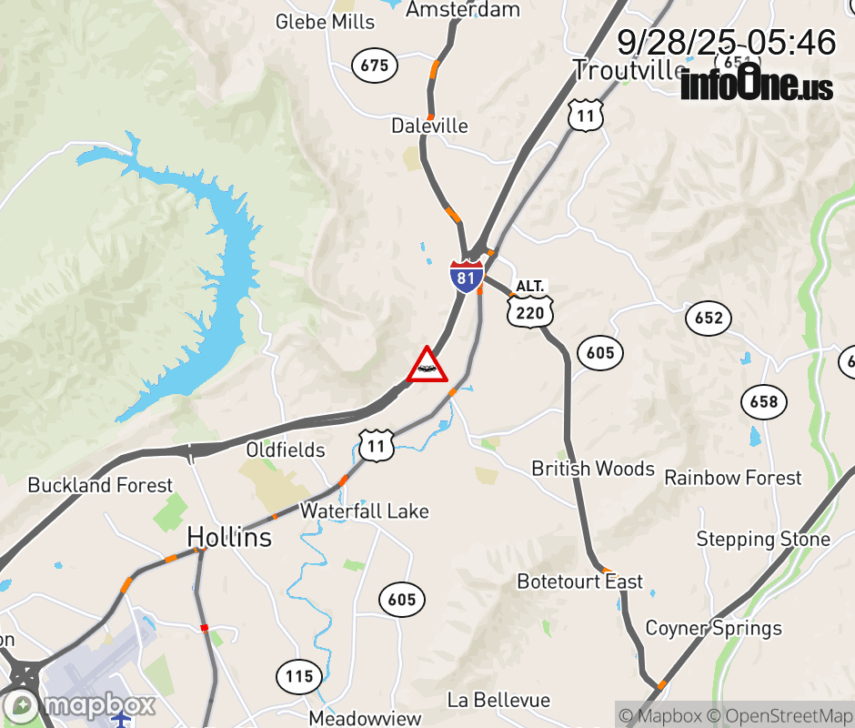 On I-81 at mile marker 149.2 in the County of Botetourt, motorists can expect delays due to a vehicle crash. The north right shoulder is closed. Updated: Sun 9/28/25 5:46 AM EDT ![]() Updated: Sun 9/28/25 5:46 AM EDT |