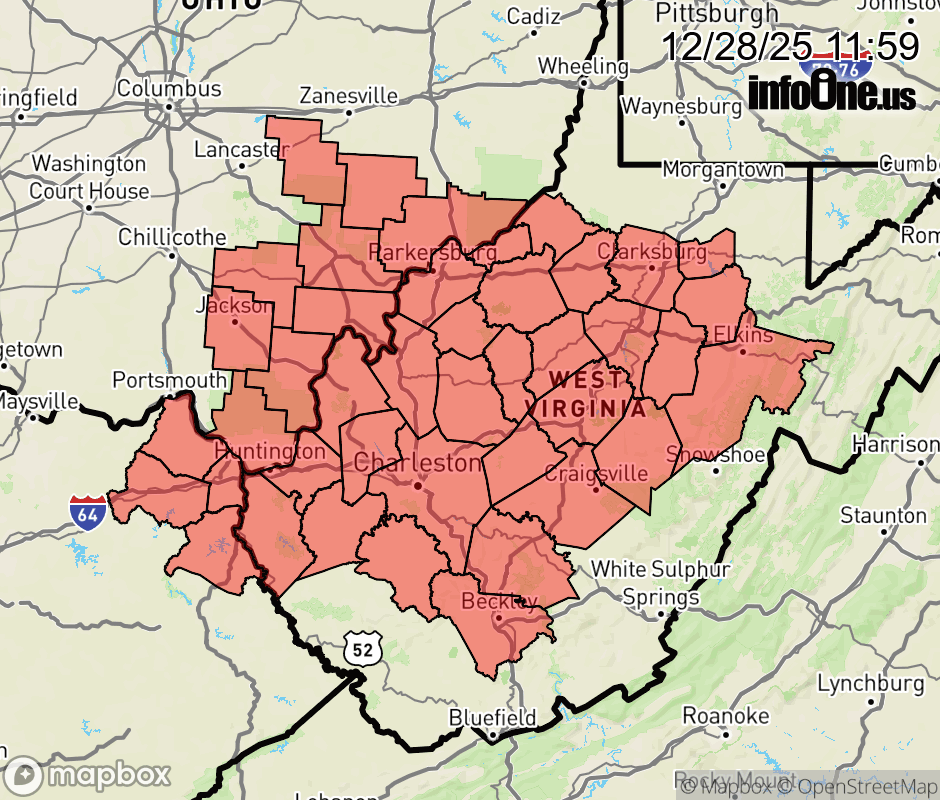 Canceled 12/28/25 3:18 PM Wind Advisory issued December 28 at 11:58AM EST until December 29 at 7:00PM EST by NWS Charleston WV * WHAT... West winds 15 to 20 mph with gusts up to 50 mph expected. * WHERE... Portions of northeast Kentucky, southeast Ohio, and central, northeast, northern, southeast, southern, and western West Virginia. * WHEN... From 1 AM to 7 PM EST Monday. * IMPACTS... Gusty winds will blow around unsecured objects. Tree limbs could be blown down and a few power outages may result. ![]() |